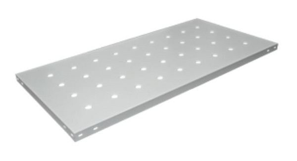 Перфорированные полки предназначены для установки на стеллажи серии MS U. Выдерживают нагрузку от 150 до 400 кг за счет дополнительного ребра жесткости. Полки имеют перфорацию (отверстия) в форме круга, которая делает эти полки проливными. При этом сохраняются нагрузочные характеристики. Крепление полок к стойкам безболтовое, на зацепах. Полки могут переставляться по высоте с шагом 50 мм. Цвет: оцинкованная сталь