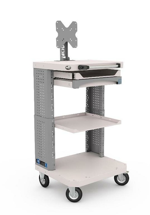 Дополнительно на тележку можно установить: выдвижную полку Comtex, выдвижной ящик Comtex, кронштейн для монитора, кронштейны для RACK модуля, цоколь для тумбы Comtex, лоток для тумбы/тележки Comtex, карман для документов А4 и другие аксессуары.