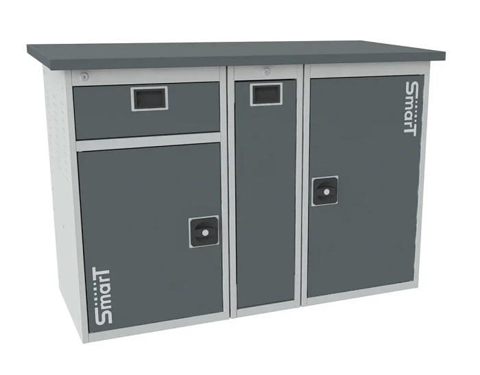 Дополнительно на верстак можно установить: перфорированный экран SMART, комплект освещения SMART, аксессуары на экран SMART, возможна установка системы мастер ключ.