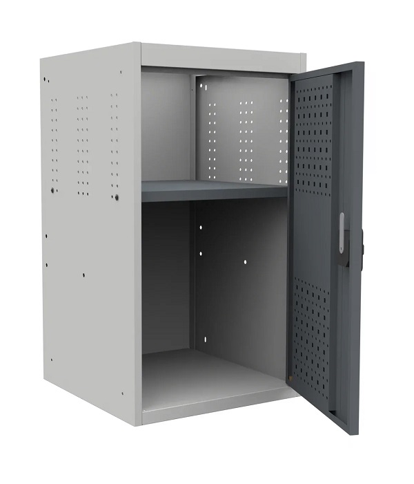 Выдерживает равномерно-распределенную нагрузку на верстак - 1000 кг, на тумбу - 300 кг, на полку - 60 кг, на выдвижной ящик -30 кг, на перфорированный экран - 50 кг.