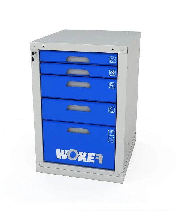В комплектацию верстака входит: столешница Woker 1200, одна тумба Woker 04, одна тумба Woker 05. Столешница выполнена из шлифованной березовой многослойной фанеры толщиной 30 мм. Снаружи фанера обработана влагостойким антисептиком цвета "красное дерево", что придает фанере повышенную влагостойкость и более темный цвет. Тумба Woker 04 комплектуется 4 выдвижными ящиками (3 высотой - 135 мм и 1 высотой - 275 мм). Тумба Woker 05 комплектуется 5 выдвижными ящиками (2 высотой - 135 мм, 2 высотой - 65 мм и 1 высотой - 275 мм). Полезный размер ящика: (ШхГ) 459х612 мм. В ящиках есть противоскользящие коврики и набор наклеек с пиктограммами для маркировки содержимого.