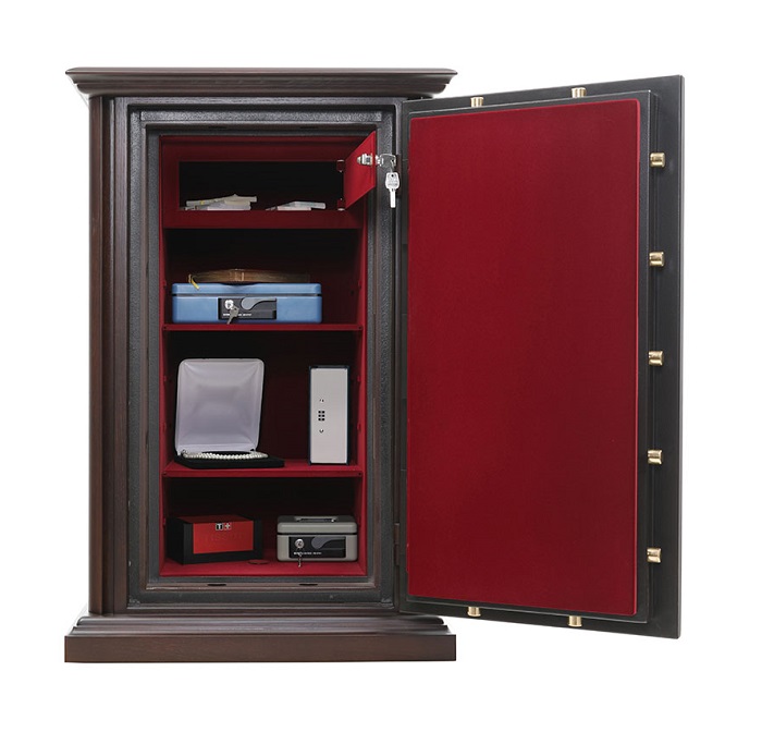 Valberg Гарант Евро 95 Т EL Д (дуб) предназначен для сохранности документов и ценностей при пожаре и взломе. Рекомендованная сумма хранения денег до 6,5 млн. руб. для физических лиц и до 2 млн. руб. для юридических лиц. Устойчивость к взлому по ГОСТ Р 50862-2017: класс 2 (ГОСТ Р). Огнестойкость: ГОСТ Р 57384-2017: класс 60Б (ГОСТ Р). При заливке двери и корпуса сейфа используется запатентованная система армирования огнестойкого бетона. Толщина защитного слоя двери - 33 мм, общая толщина двери - 105 мм. Толщина боковых стен -77 мм, задней стенки - 51 мм. В сейф установлена: 3х сторонняя ригельная система запирания; защита замка и ригелей от высверливания и выбивания; система блокировки ригельного механизма при выбивании замка; тепловой замок, усиленный огнестойким уплотнителем. Сейф Valberg Гарант Евро 95 Т EL Д (дуб) закрывается электронным кодовым замком PS610/E036 (под заказ возможно установить - ключевой замок KABA MAUER; биометрический кодовый замка PS610FD/E36FD). Предусмотрена возможность анкерного крепления к полу (анкерный болт в комплекте). Внешняя отделка выполнена из натурального дерева, внутренняя отделка из бархата. Покрытие ручек: матовый хром или золото. Цвет: корпус - №11-А, внутренняя отделка - С-1059. Возможны другие варианты окрашивания.