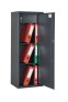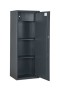 Сейф односекционный ШБМ-120 предназначен для хранения бумажных документов. Сейф сертифицирован на устойчивость к взлому по ГОСТ Р 51113-97 (п 4.1 табл 1а) и соответствует классу взломостойкости Н0 (ниже нулевого). Каркас представляет собой сварные вместе пластины из высококачественной стали. Толщина стенок сейфа 2 мм, толщина двери 5 мм. ШБМ-120 оснащен 2 съемными полками и трейзером. В двери установлен ключевой 8-ми сувальдный замок с ригельной системой запирания. Диаметр ригеля 20 мм. На задней стенке корпуса расположены отверстия для крепления. Цвет серый с эффектом молотковой эмали